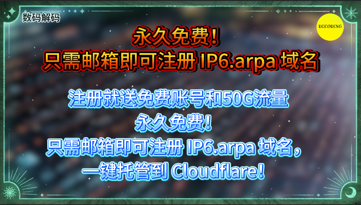 热门永久免费!只需邮箱即可注册 IP6.arpa 域名,一键托管到 Cloudflare!