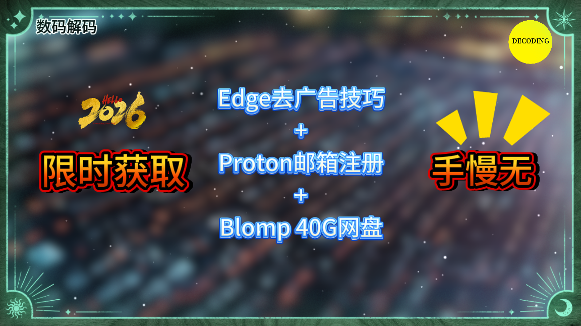限时获取!Edge去广告技巧+Proton邮箱注册+Blomp 400G网盘,手慢无!