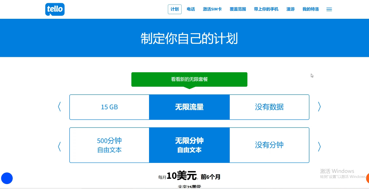 - 选择「100 Minutes Text」和「No data」5 USD月租套餐