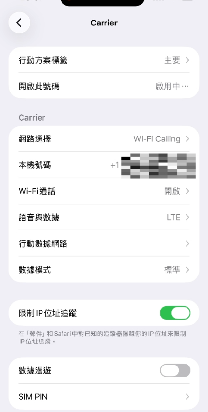 - 当「网络选择」显示为「Wi-Fi Calling」或「Carrier using Cellular Data(或 Carrier 正在使用蜂窝数据)」时代表已激活