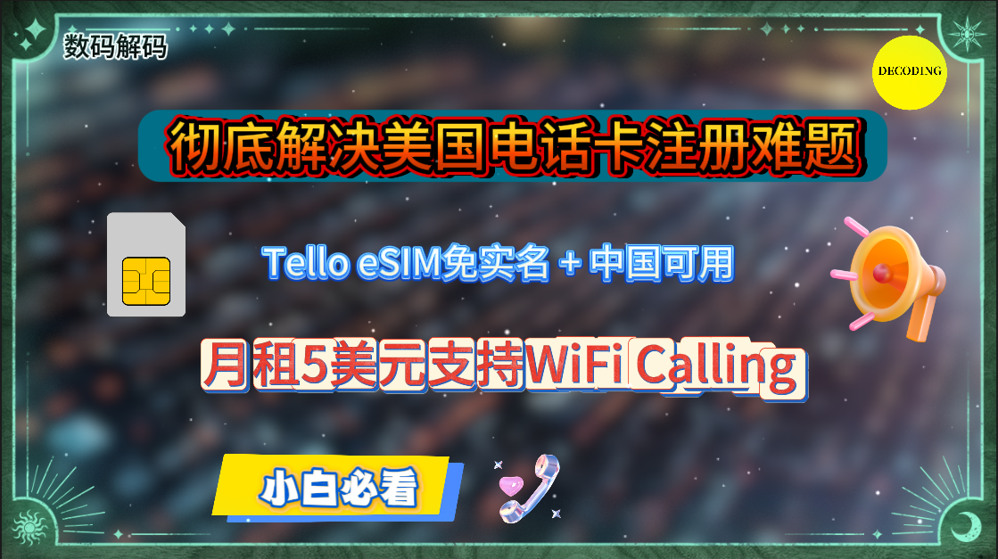 彻底解决美国电话卡注册难题!Tello eSIM免实名+中国可用,月租5美元支持WiFi Calling,小白必看!