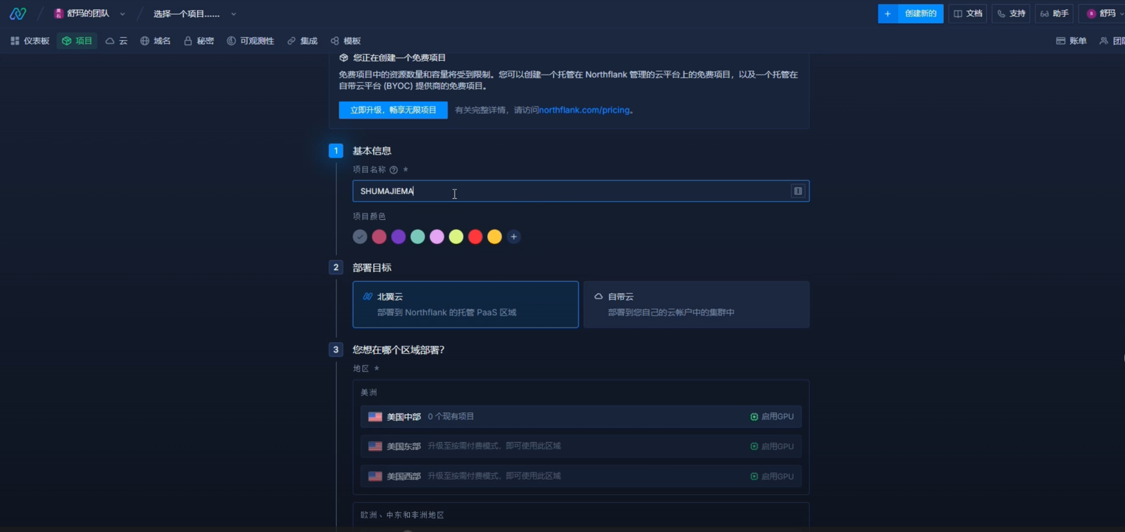 - 多项目: 如果想多开,可以尝试创建不同的 Team 或选择不同的地理区域。