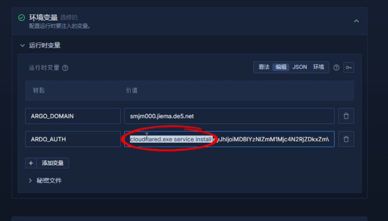 TUNNEL_TOKEN(或其他你镜像要求的变量名)。
